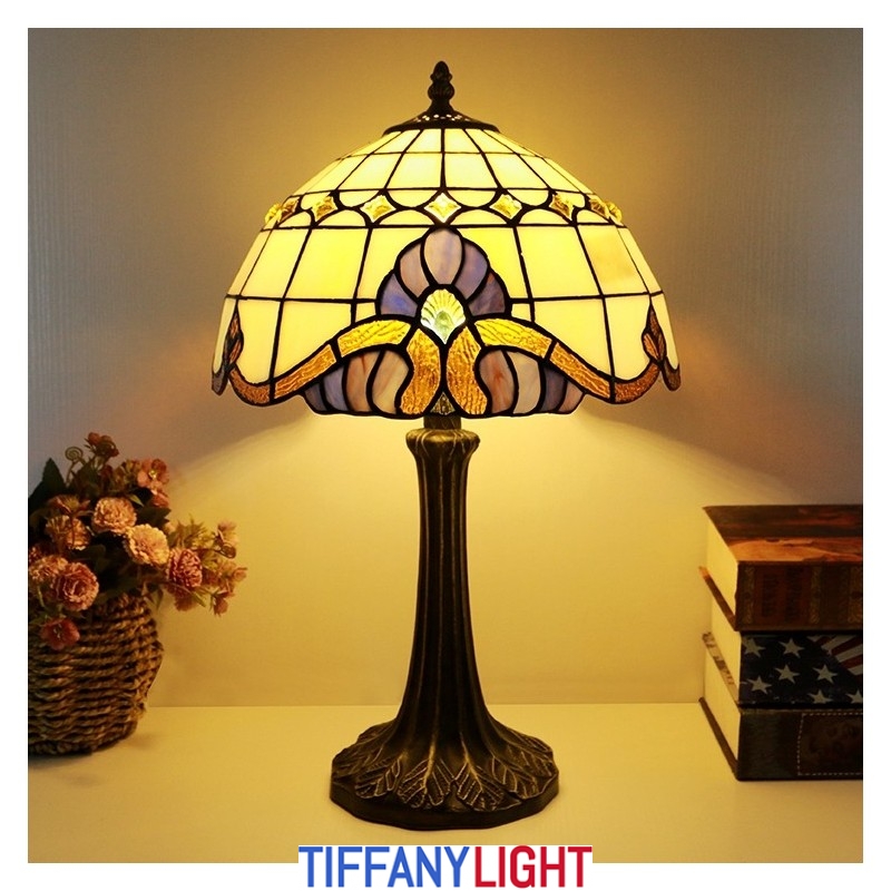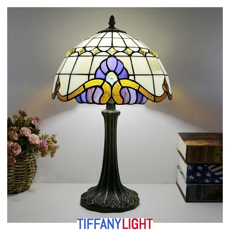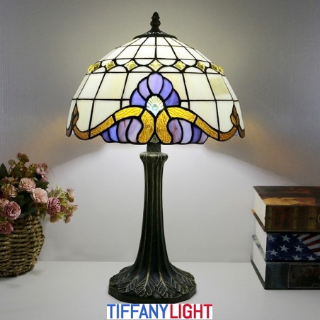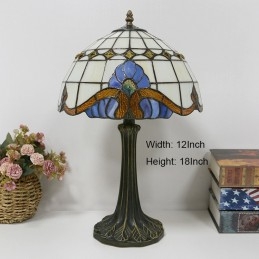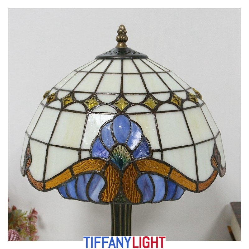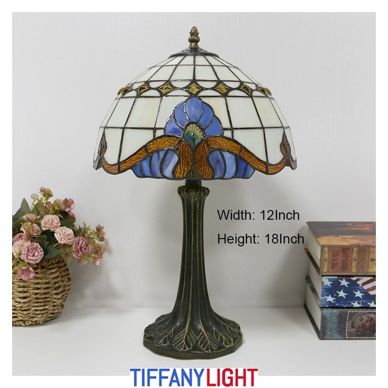 12 אינץ' מנורת שולחן בסגנון טיפאני מנורת זכוכית צבעונית בארוק אור שולחן כתיבה עתיק